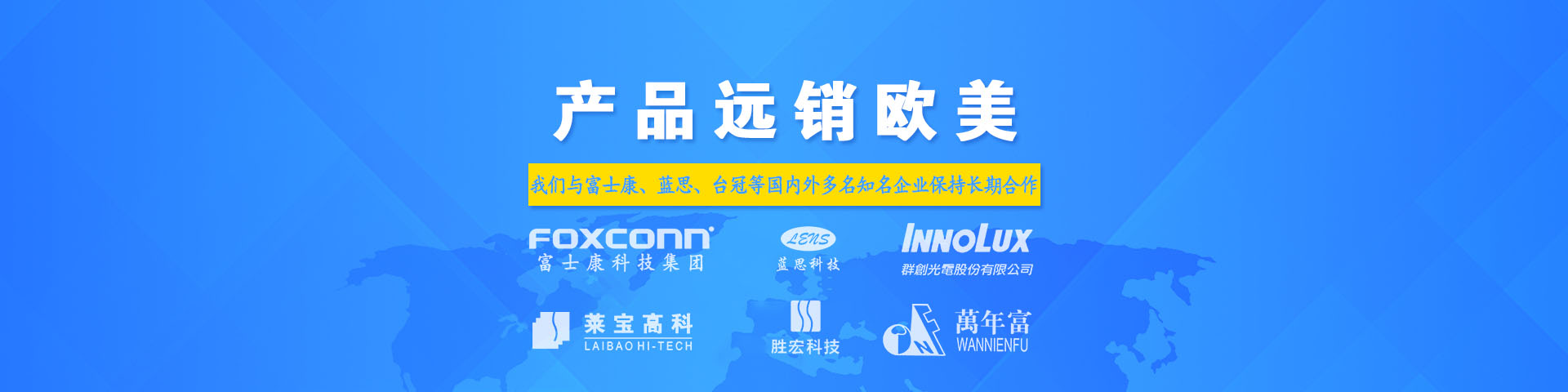 產品被廣泛應用於線路板,觸摸屏,印刷,家電,數碼,安防,儀器儀表,電工電氣,通信及汽車電子等領域,目前公司產品遠銷歐美、中東、東南亞,並與藍思、群創、帝晶等世界先進企業保持合作。
